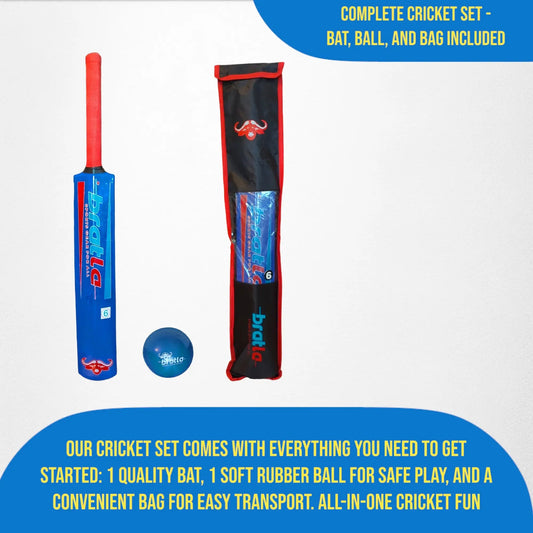 Bratla Cricket Set Size 6 - Blue Color | Includes Bat, Wind Ball, Stumps, and Non-Striker Stump with Plastic Base