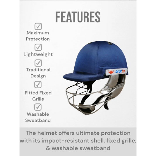 Bratla Pro Cricket Helmet - Navy Blue with Extra Padding, Neck Guard, and Fixed Grille for Superior Protection and Comfort