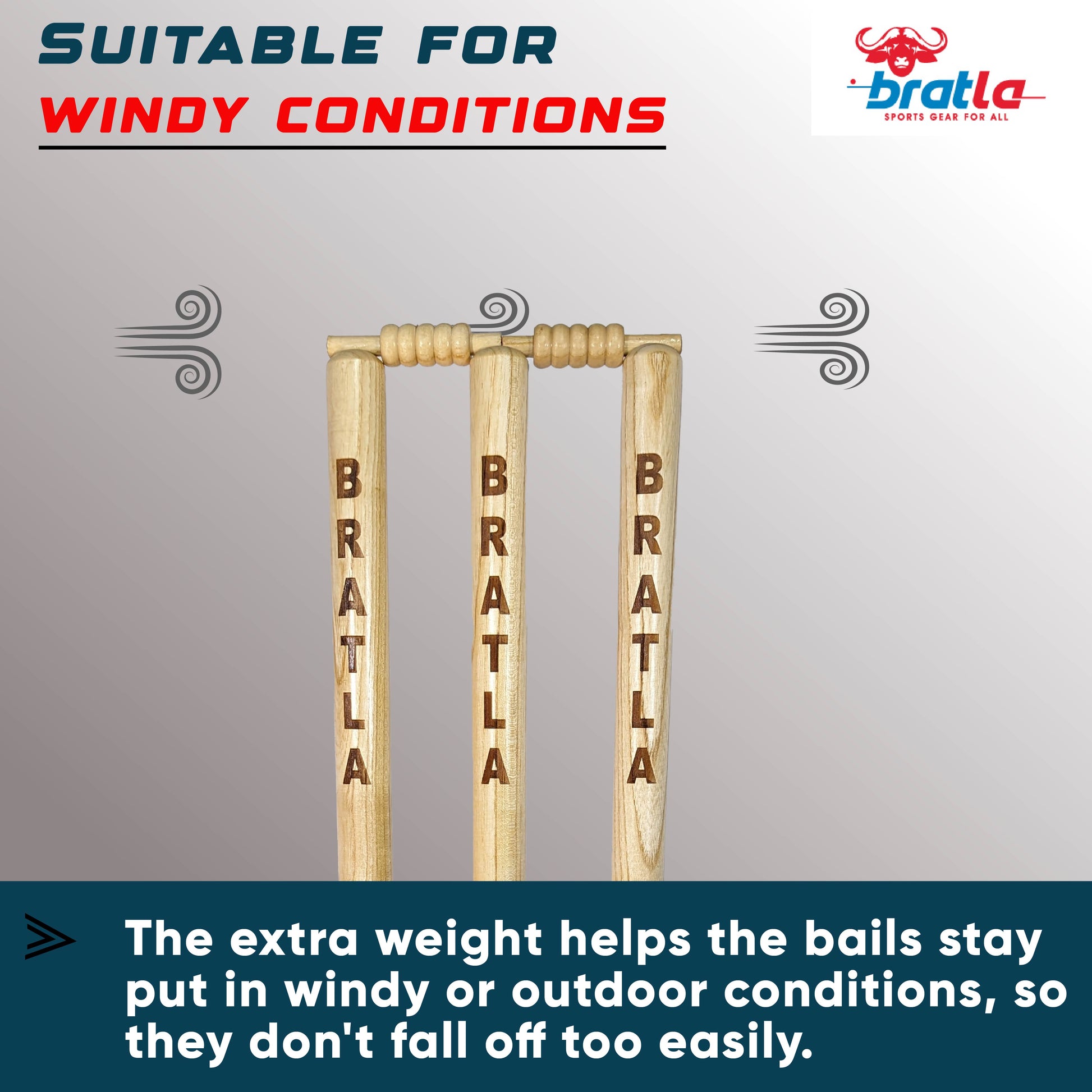 Made for User playing cricket with wooden stumps and durable wooden bails.